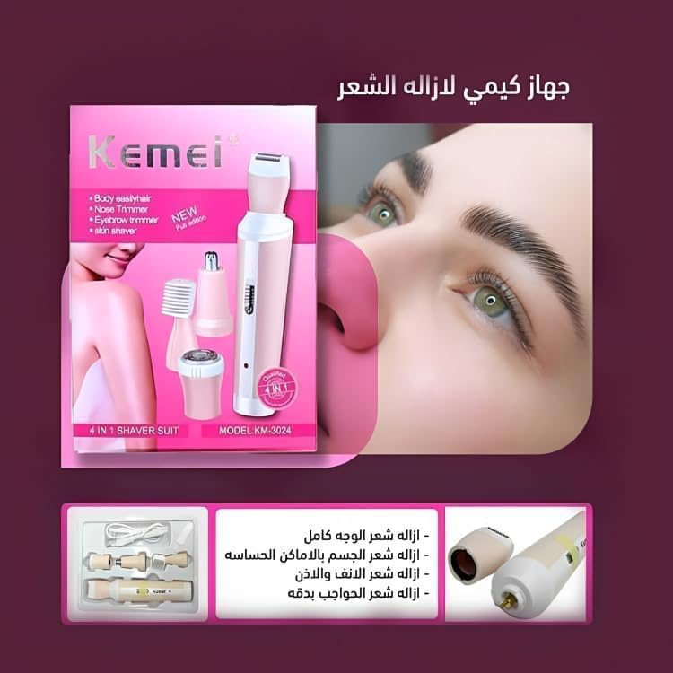 - 4in1 Hair Remover Includes Facial Shaver, Eyebrow Trimmer, Bikini Trimmer, Body Shaver