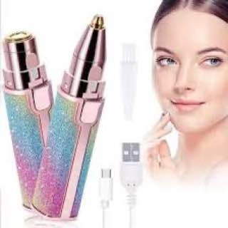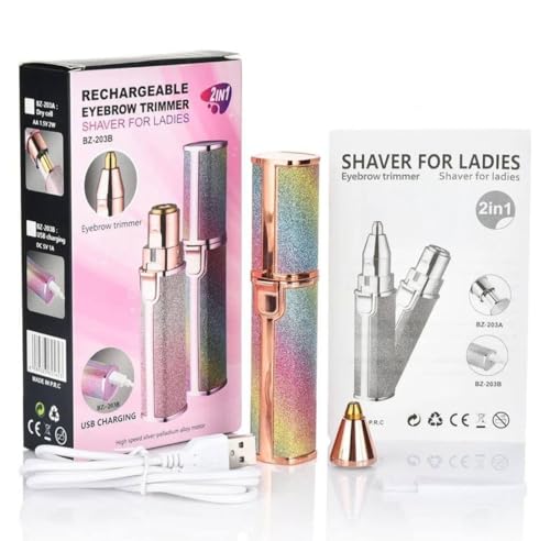 Generic - جهاز إزالة شعر الوجه للنساء محمول 2 في 1 قابل لإعادة الشحن لحلاقة بدون ألم بإضاءة ليد