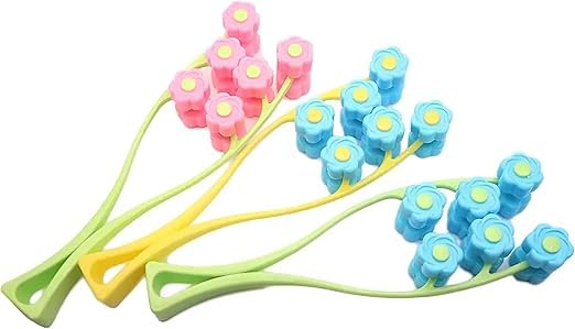 - تصميم مبتكر: أداة مساج يدوية للوجه مزودة بـ 6 رؤوس دوارة على شكل زهور لتدليك البشرة بلطف وفعالية