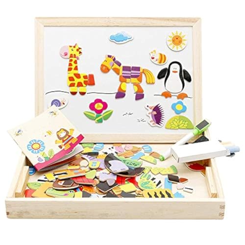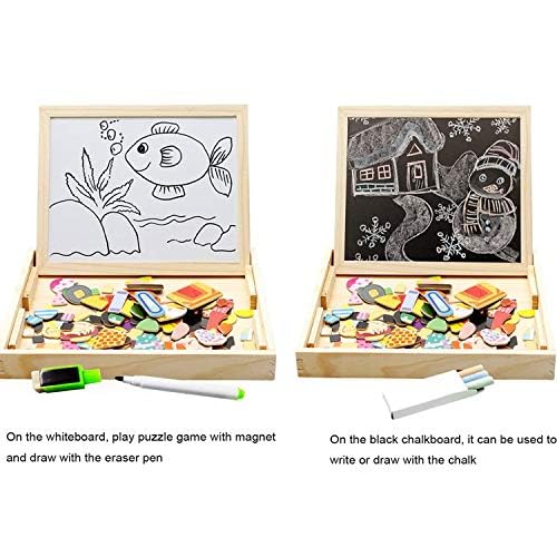 Factory Price - Learning Easel for kids, 3-in-1 Wooden Easel with Magnetic Puzzle Blackboard and WhiteBoard