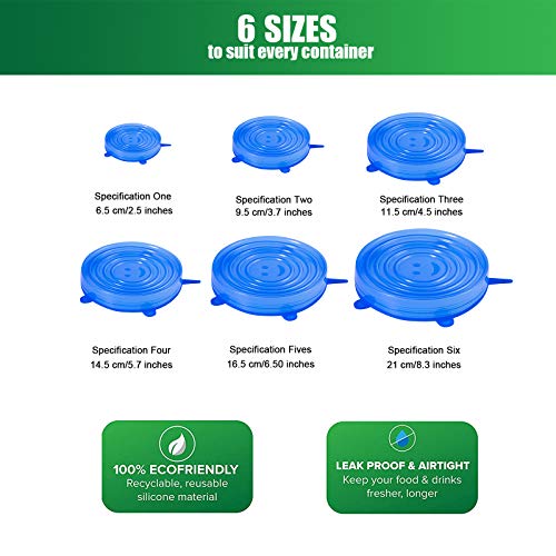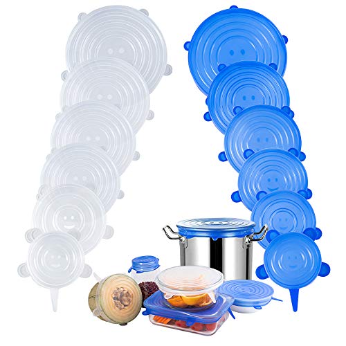 FAIHTS - مجموعة أغطية من السيليكون المرن قابلة لإعادة الاستخدام، أغطية سيليكون للأطباق العميقة، 6 مقاسات مختلفة من أغطية السيليكون لعلب حفظ الطعام للميكروويف والفريزر من FAIHTS، عبوة من 12 قطعة