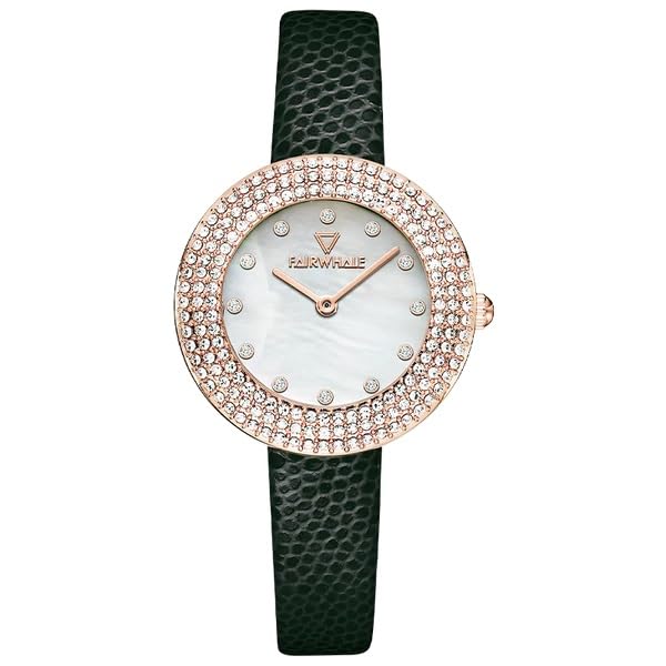 Fairwhale - FW-3390-3 Leather Watch for Women, 33 mm Size, Black/Silver