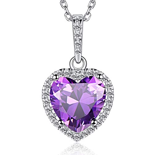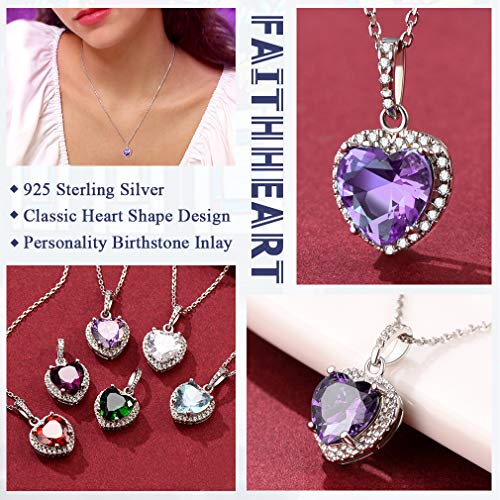 FaithHeart - FaithHeart Women's Sterling Silver Cubic Zirconia Heart Birthstone Necklace (Length: 40cm)