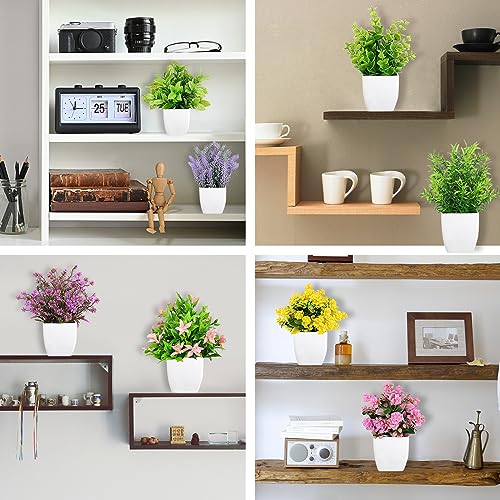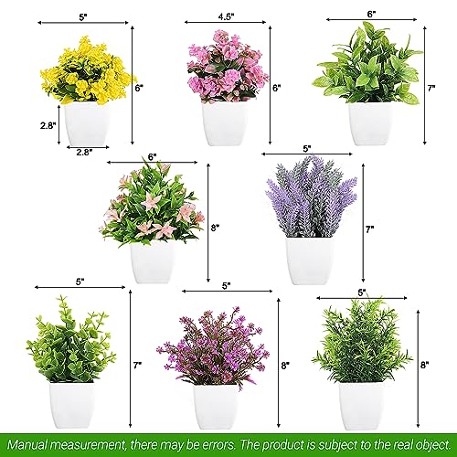 - 【Widely Applications】- 8 small pot fake plant set can be used for indoor and outdoor decoration, office, window sill, bathroom, kitchen, dressing table, bookshelf, etc. Create a bright and clean simple style.