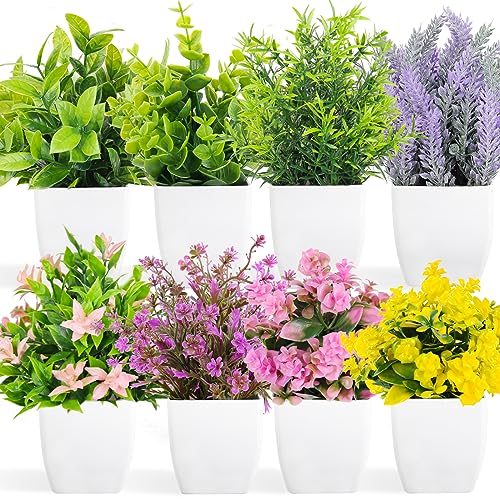 AOKE - Fake Plants Mini Potted Artificial Plants, 8 Pack Artificial Eucalyptus Flower Lavender Plants Small Houseplants Greenery in Pot, Small Faux Plants Decor for Home Bathroom Office Farmhouse Desk Shelf