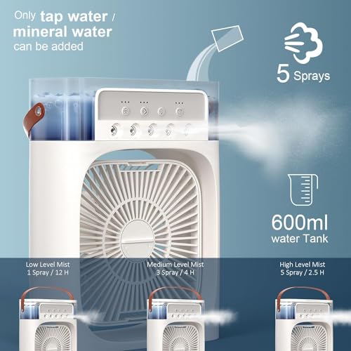- Timing function: 3 kinds of automatic timing (1H / 2H / 3H), you can choose the most suitable one to enjoy your leisure time, sleep or working time. Super Quiet and 3 Hours Timer Our air cooler fan has low noise, so you will not be disturbed whether you are working or falling asleep.