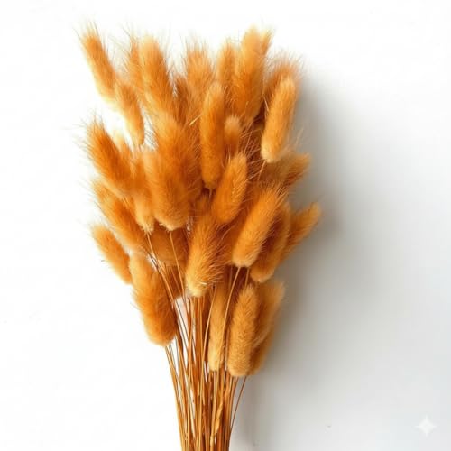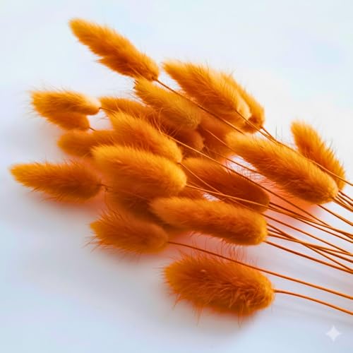 FANCY FLOWERS - FANCY Natural Dried Lagurus Bunny Tails Grass, 30-50 cm, Decorative Pampas Bouquet for Home Decor (Papaya Orange, 120 Stems)