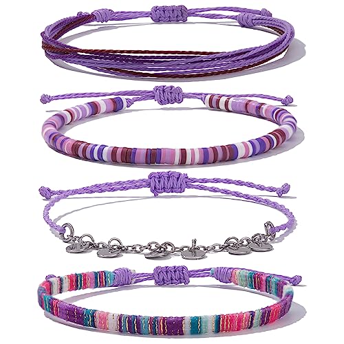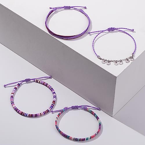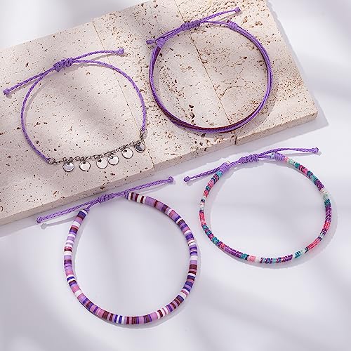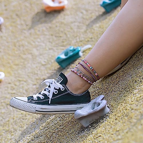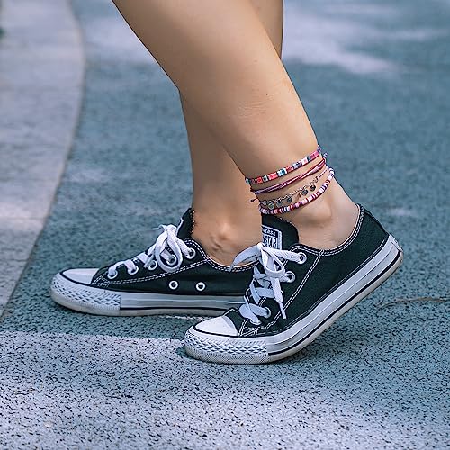FANCY SHINY - FANCY SHINY Waterproof String Anklets Boho Clay Beads Ankle Bracelets Cute Cloth Stainless Steel Coin Anklet Set Beach Summer Jewelry for Women, no gemstone