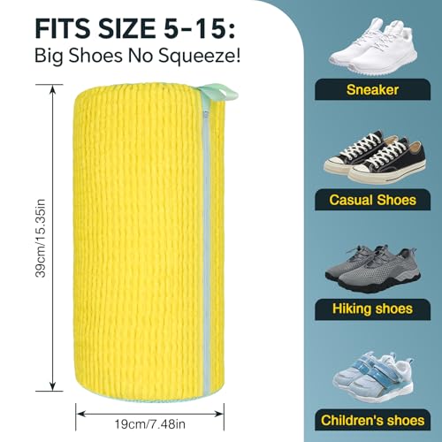 - 👟【Fits ALL Shoe Types (Up to Size 15)】Bigger than most shoe bags! Fits men’s sneakers, women’s flats, kids’ shoes, and more—with room to spare. Use one shoe laundry bag per pair for convenience, or clean each shoe separately for a thorough wash. Perfect for athletic shoes, casual wear, and even delicate fabrics!