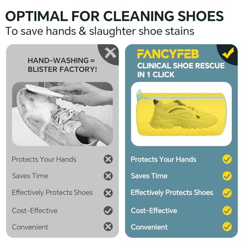 - ✨【Hands-Free Shoe Cleaning – Machine Wash with Ease】Tired of scrubbing shoes by hand? Our 360° mesh shoe washing bag uses fluffy fibers to deep-clean sneakers in the washing machine—faster, easier, and gentler than hand washing or brushes! Just toss your shoes inside, throw them in the wash, and enjoy like-new shoes with zero effort. Plus, it protects shoes from damage, extending their lifespan!