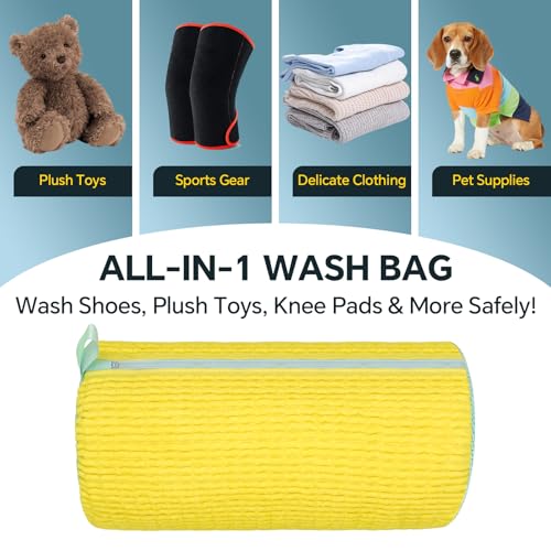 - 🧼【Deep-Clean Technology with Fluffy Fibers】Upgraded with 20,000+ thickened chenille fibers (1.2” long) and sandwich mesh fabric, this shoe washing machine bag delivers superior scrubbing power while letting soap and water flow freely. The heavy-duty 1450gsm fabric (colorfast grade 3+) ensures a deep clean without wear and tear—far better than flimsy mesh-only bags!