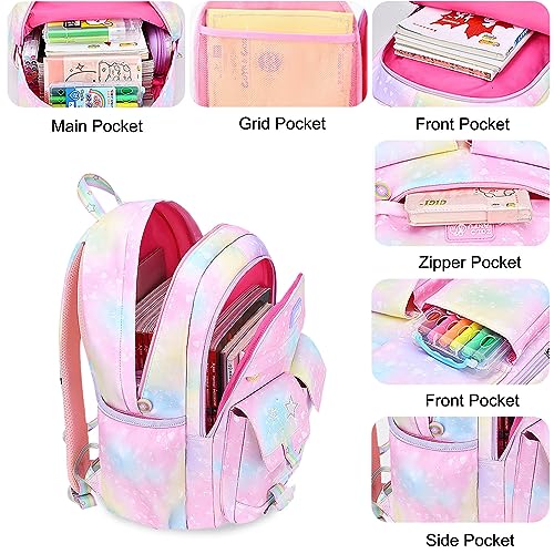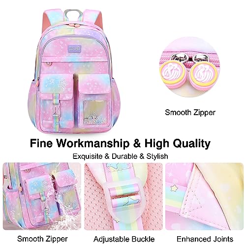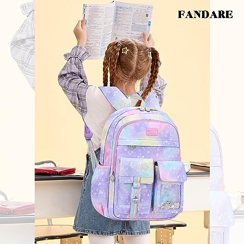 FANDARE - FANDARE Cute Children's Backpack Galaxy School Bag Girls Boys School Backpack Book Bags Backpack College Shoulder Bag for Outdoor Travel School Daypacks with Chest Strap