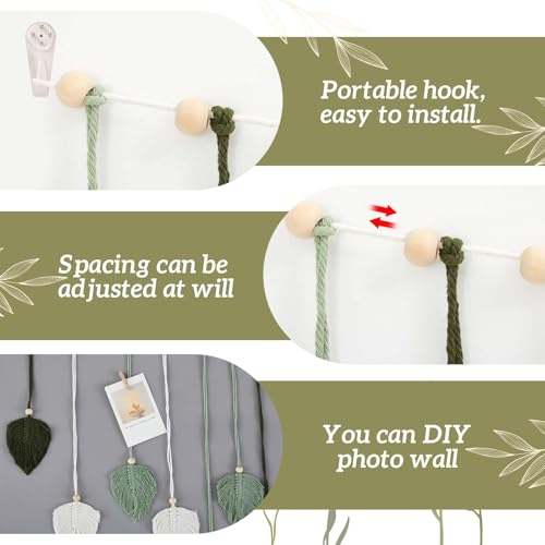 - Ideal Unison of Colors: strikingly vibrant dark green threads merge with subtle notes of gray-green and gray-white to create this hanging tapestry; The palette is intentionally chosen to express a nature-inspired Bohemian vibe, effortlessly transforming any living environment into an artistic retreat