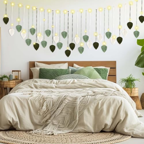 Fanfanwin - Fanfanwin Macrame Wall Hanging Green Tapestry Boho Home Decor with Light, 71 X 30'' for Bedroom, Living Room, Boho Nursery Decor, Plant Lover