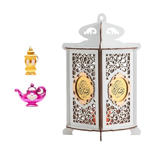 Generic - عروض رمضان من فنوني - فانوس رمضان خشب كبير مقاس 22 سنتي اغاني رمضان وانوار رائعة + 2 فانوس رمضان ميدالية مضيء ورائع جدا F19 (موديل 6)