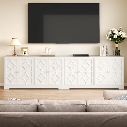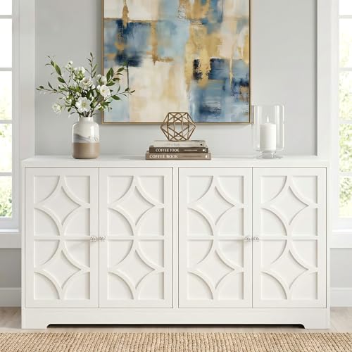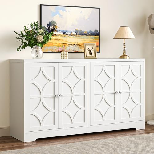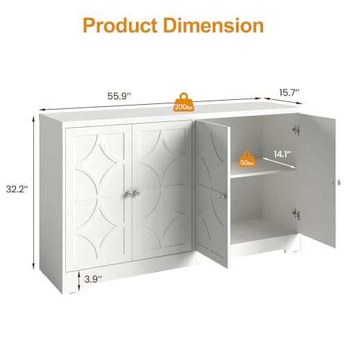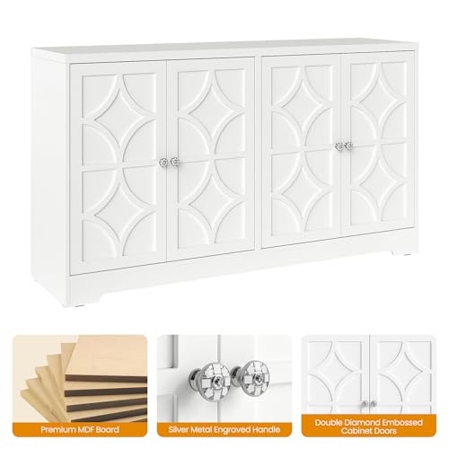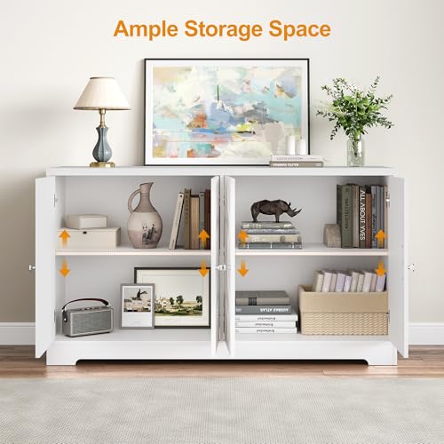 FansaFurn - RoyalCraft Sideboard Buffet with 4 Doors, Mid-Century Sideboard Cabinet with Adjustable Shelves, Accent Cabinet for Entryway, Living Room, Dining Room (White)