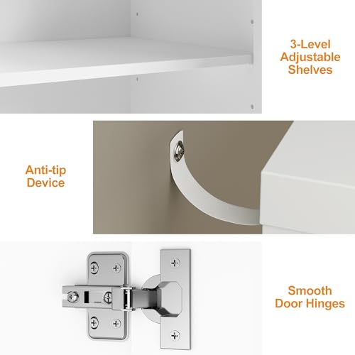 - Spacious Storage: Featuring 3-level adjustable shelves for personalized organization, this cabinet easily accommodates larger items without shelves, offering the flexibility to adapt to your needs.