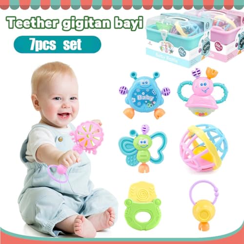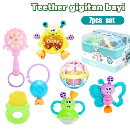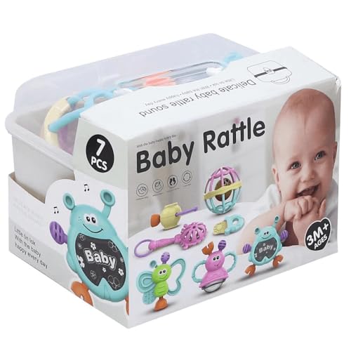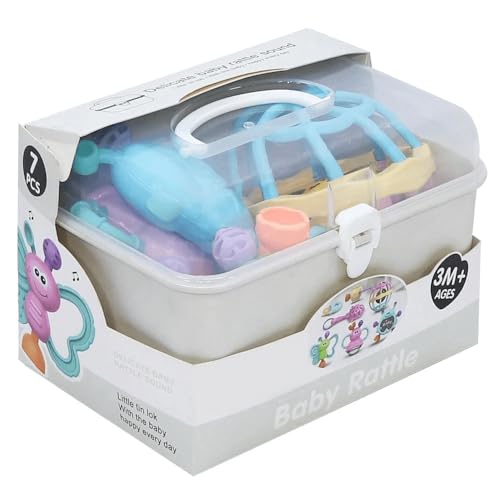 Generic - Fantastic-Kids-Toys Baby Rattles Set, 7 Pieces, Storage Box, Suitable for Babies from 3 Months, Butterflies and Fun Characters by Fantastic-Kids-Toys (Grey)