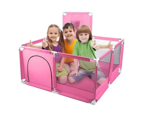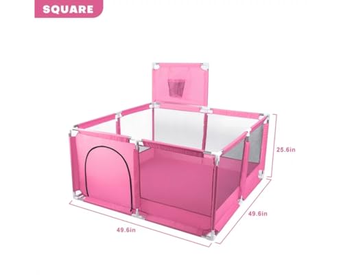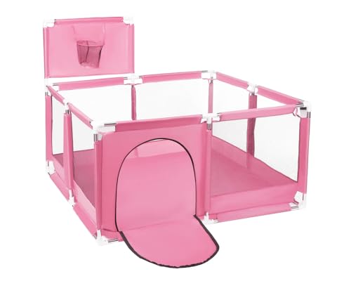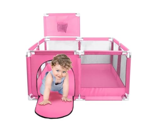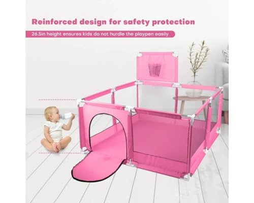GHAZAL - Fantastic-Kids-Toys Foldable Baby Playpen with Basketball Hoop, Floor Mounted, Safety Protection for Babies and Babies While Playing, Code 159 By Fantastic-Kids-Toys Space (130cm*130cm*65cm) Pink