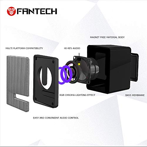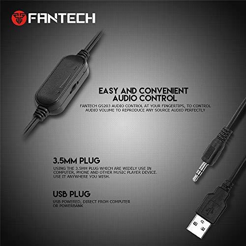 Fantech - ايقاع GS203 - مكبر صوت لالعاب الكمبيوتر مع مقبس وUSB لمكبر صوت الفضاء اللوني ار جي بي لايتينج، مضخم صوت هاي فاي، من فان تيك