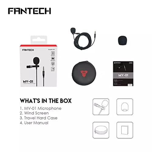 Fantech - Fantech MV-01 Professional Lavalier 3.5mm (TRRS) Clip-on Microphone with Hard Case free