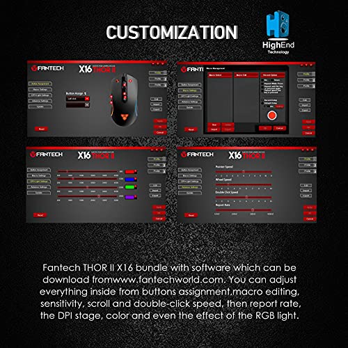 Fantech - Fantech X16 Thor Ii Macro Programmable Running RGB Chroma Gaming Mouse with USB Interface for Computer