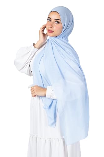 Farah - Farah Chiffon 3D Scarf For Women-Baby Blue-180 * 70cm