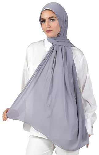 Farah - Farah Chiffon Plain Dobbita Scarf For Women-Grey-200 * 75cm