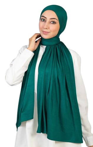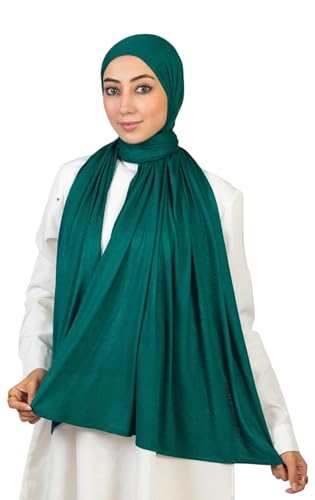 Farah - فرح سكارف قطن جيرسي كويتي للنساء - اخضر غامق-190 × 75 سم
