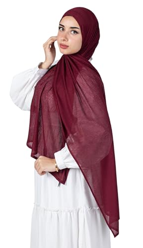 Farah - Farah Cotton Kuwaiti Lino Scarf For Women-Dark Red-190 * 70cm