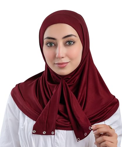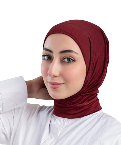 Farah - فرح حجاب من الفسكوز الكويتي تابايا مع كابسين مقاوم للصدا للنساء - احمر غامق