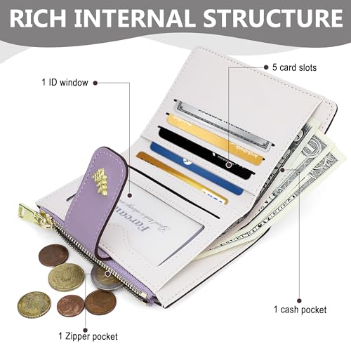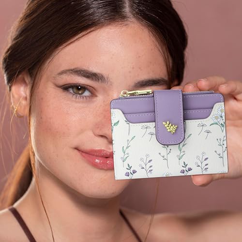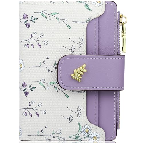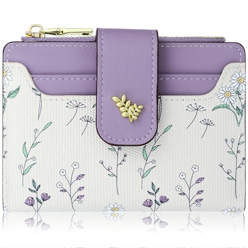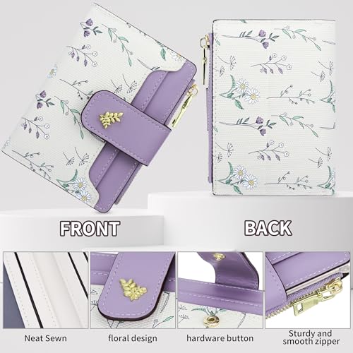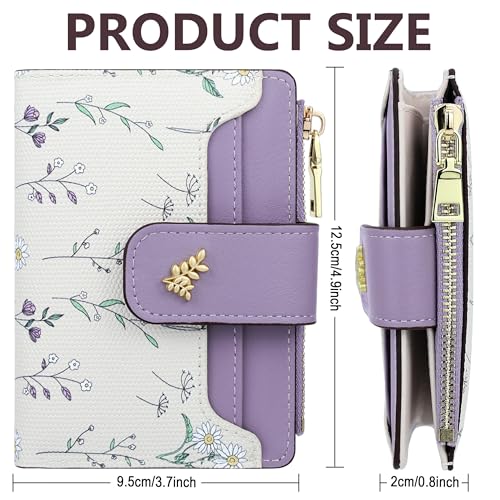 Farcauo - Purses for Women Small Ladies Purse Wallet for Women Cute Wallets with Card Holder Ladies Kawaii Flower Card Wallets Coin Purse with Credit Card Holder, # P Purple Flower Wallet Women's, 12.5