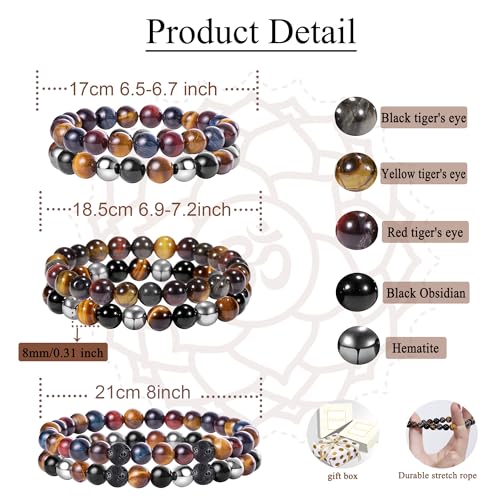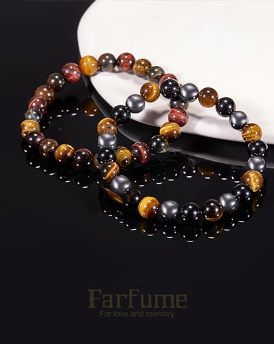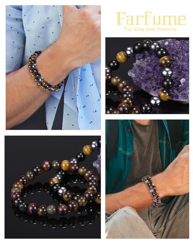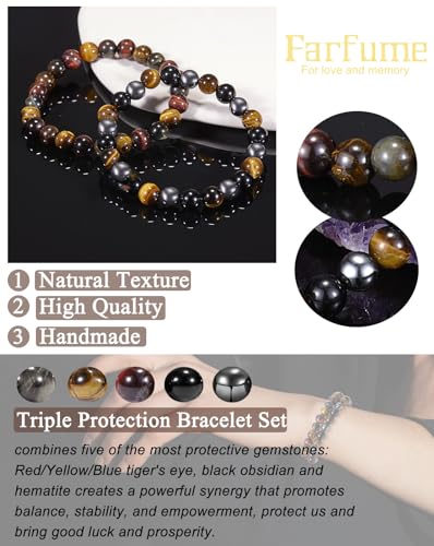 Farfume - Farfume Bracelets for Women - Natural Crystals Bracelet Women Natural Gemstones Yoga Reiki Bangle- A Set of Double Bracelets(1-M Obsidian&Black Rutilated Quartz)