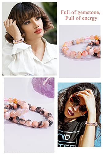 Farfume - Farfume Chakra Bracelets for Women - Healing Crystals Bracelet Women Natural Gemstones Yoga Reiki Bangle- A Set of Double Bracelets, 6.3 inch, Stone