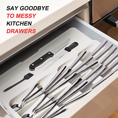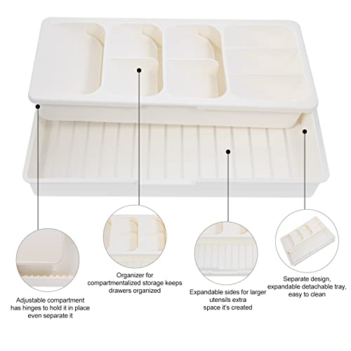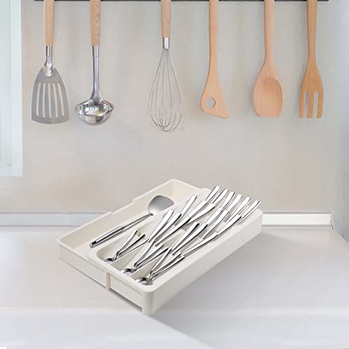 Faridabio - صينية تنظيم أدراج المطبخ، وتخزين وتنظيم أدوات المائدة الفضية قابلة للتوسيع لأدراج المطبخ والمعالق والشوك، لون أبيض كريمي