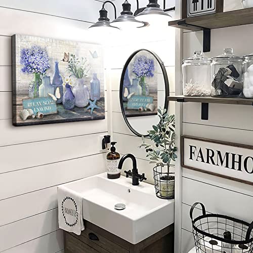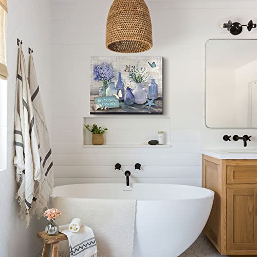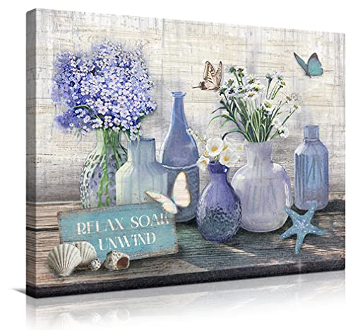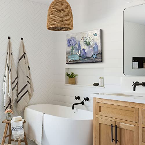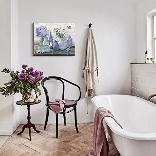 WALLOHERE - Farmhouse Bathroom Decor Canvas Wall Art Coastal Beach Picture Wall Art Purple Flower Paintings Office Decor for Women Artwork Print Purple For Living Room Bedroom Kitchen Ready To Hang12 x16