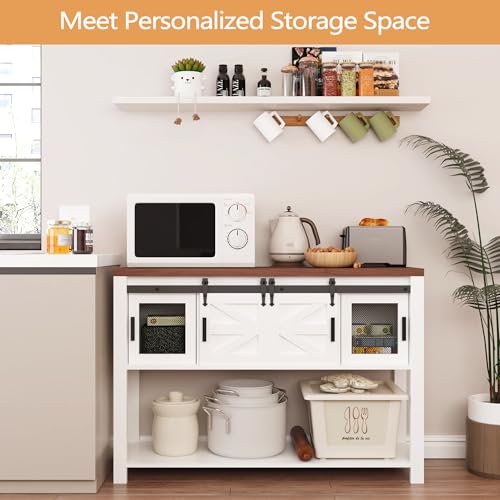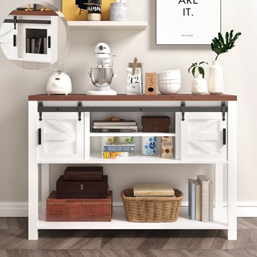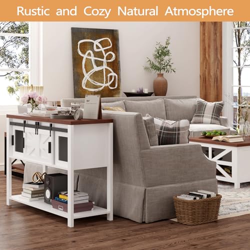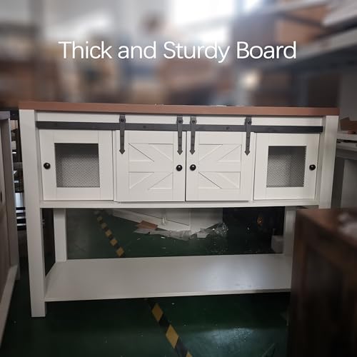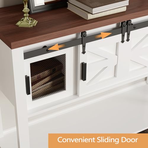 MilleLoom - Farmhouse Entryway Table with Sliding Barn Doors,Sideboard Buffet Storage Cabinet with Storage,Farmhouse & Industrial Rustic Console Table with Shelf for Kitchen Dinning Room Living Room Hallway Entra