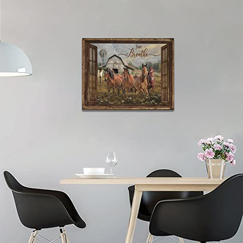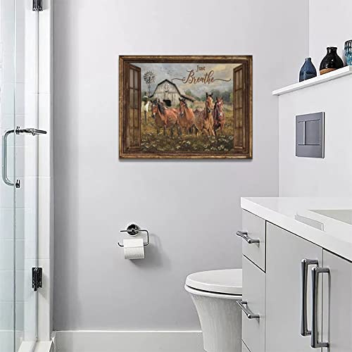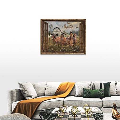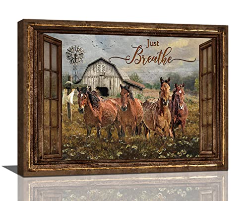 eiffecho - Farmhouse Horse Barn Decor Wall Art Rustic Farm Country Cross Christian Religion Just Breathe Window Pictures Wall Decor Canvas Painting Prints Artwork Framed for Bedroom Bathroom Living Room 16"x12"