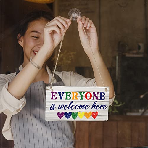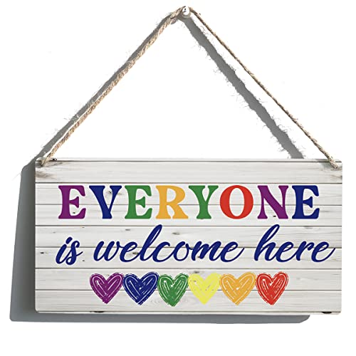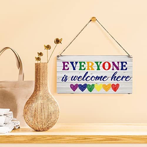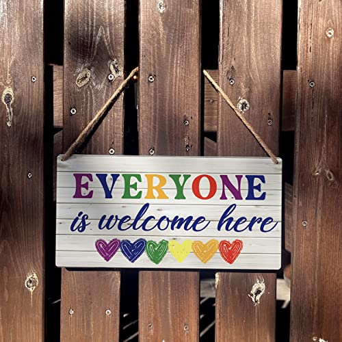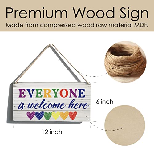 Qious - لافتة خشب معلقة بتصميم ريفي بعبارة «Everyone is Welcome Here» لديكور المنزل مقاس 30 × 15 سم
