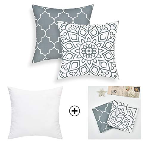BLEUM CADE - فاسيدورم مجموعة من 2 وسادة ديكور رمادية مع حشوات وسائد رمي عصرية للسرير والاريكة والكرسي والسيارة 18 × 18 انش، بوليستر