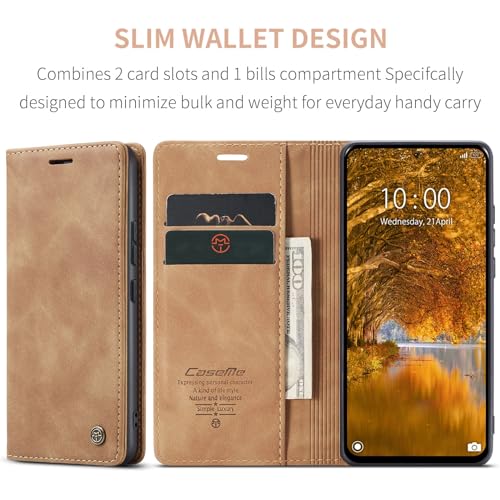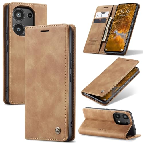 FASCINATION - جراب موبايل متوافق مع ريدمي نوت 13 برو الجيل الرابع 4G جلد افقي متعدد الوظائف فتحة للبطاقات وحامل ومحفظة لموبايل بني منقلب