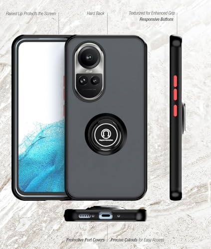FASCINATION - جراب حماية من البولي كربونات والبولي يوريثين المقاوم للحرارة ومضاد للصدمات مع حلقة دوارة بزاوية 360 درجة متوافق مع موبايل أوبو رينو 10/10 برو الذي يدعم شبكة الجيل الخامس 5G من فاسينيشن، أسود وأحمر