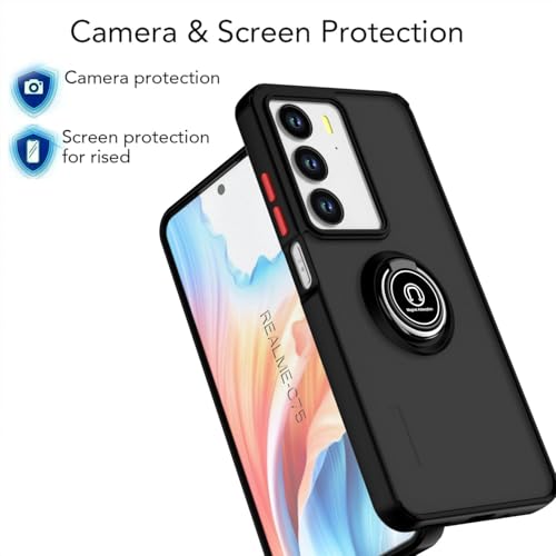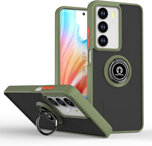 FASCINATION - جراب حماية مضاد للصدمات متوافق مع موبايل ريلمي C75 شبكة الجيل الرابع 4G مطفي من البولي كربونات + البولي يوريثين الحراري مع حلقة 360° من فاسينيشن (لون أخضر عسكري)