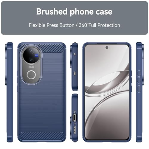 FASCINATION - جراب حماية مرن ورفيع ومتين ومضاد للصدمات متوافق مع موبايل فيفو V50 شبكة الجيل الخامس 5G من السيليكون الكربوني من فاسينيشن (أزرق)