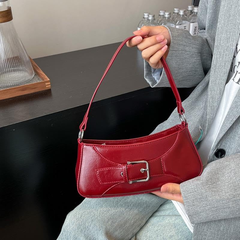 Generic - Fashion Accessory - Sophisticated Leather Shoulder Bag with Buckle Accents for Modern Casual and Office Looks