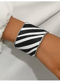 Generic - Fashion Bracelet with Black and White Striped Pattern Fashion Metal Wrist Accessory