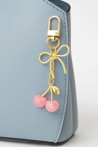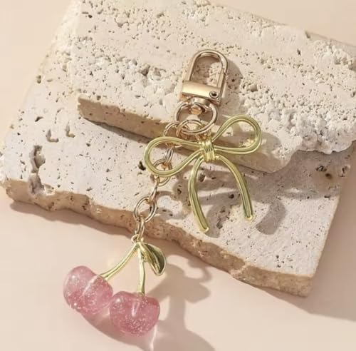 Generic - Fashion Cherry Bow Keychain – Cute Alloy Pendant Charm for Bags, Backpacks & Keys – Women’s Sweet Cartoon Accessory – Pink Glitter Cherries