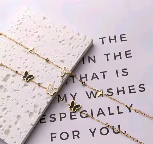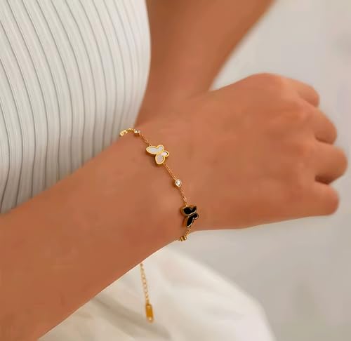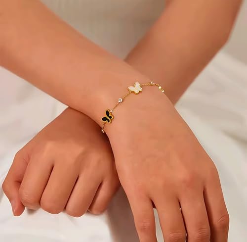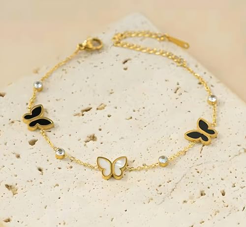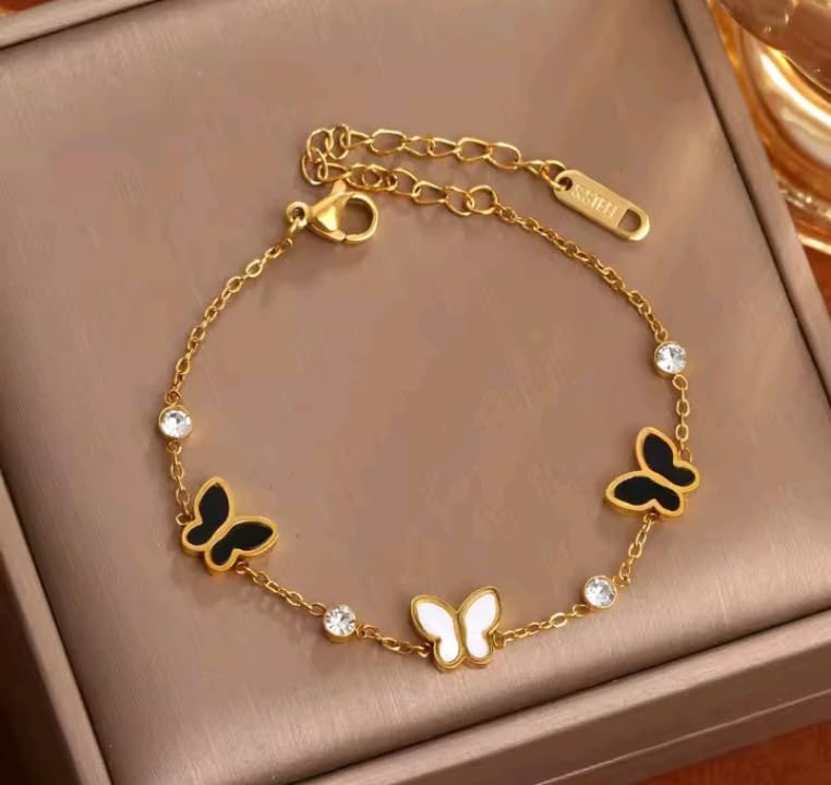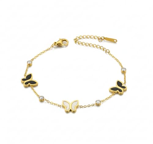 Generic - Fashion Gold Bracelet with Black and White Butterflies, Crystal Studded Fashion Design for Women and Girls