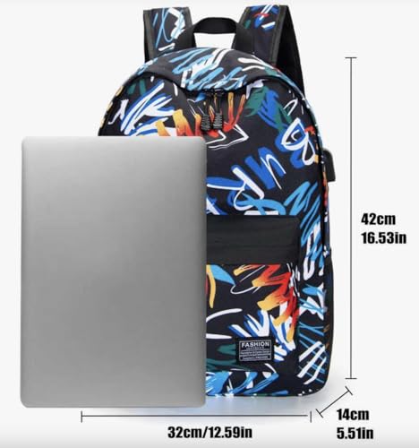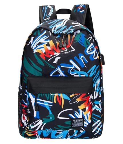 Generic - Fashion Graffiti Print Backpack, Multi-Coloured Abstract Pattern, school bag