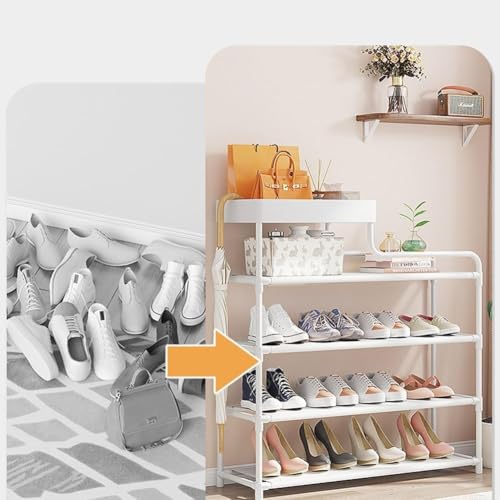Generic - FASHION.HOME 4-Tier Metal Shoe Organizer with Top Storage Basket – Sturdy & Durable Shoe Organizer & Closet Organizer – Practical Shelf with High Quality